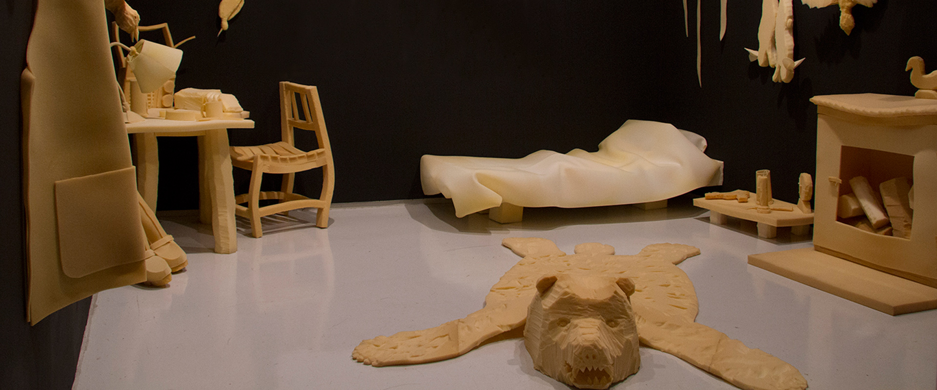 Shahar Yahalom’s work “Stone-Wood” in the exhibition “New Materials”, Artport